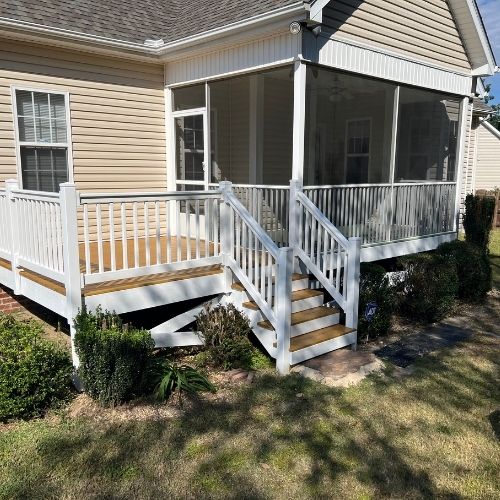 Homes in Clayton and Johnston County face specific challenges — seasonal humidity, heavy rain, intense sun, and storm exposure. We understand how these conditions affect decks, fences, siding, paint, flooring, and structural components.